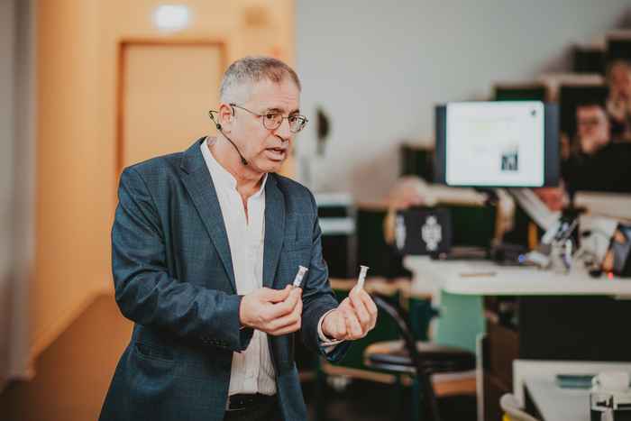 A keynote by Gadi Rothenberg, Chair of Heterogeneous Catalysis and Sustainable Chemistry at the UvA, offered a great example of translating academic knowledge to societal impact. In an energetic and humorous story, he talked about his invention, a deep soil water sampler, and stressed the importance of writing an agreement with partners before developing deep-tech innovations. His advice to aspiring entrepreneurs: ‘You will fail a lot, but failure is not a bad thing’.