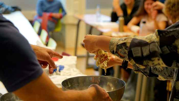 Students make bread during lecture: full classroom in course on science behind cooking